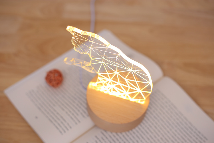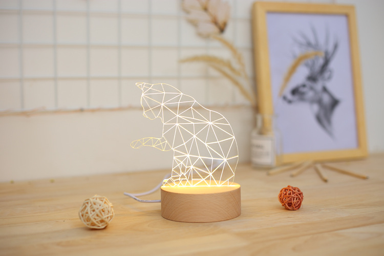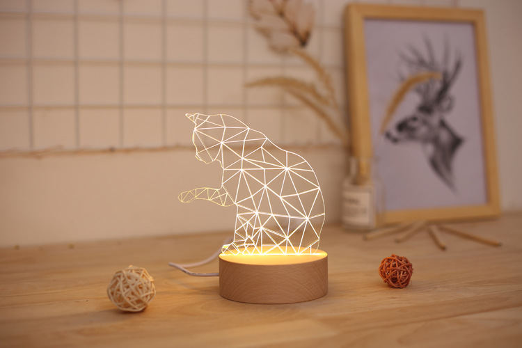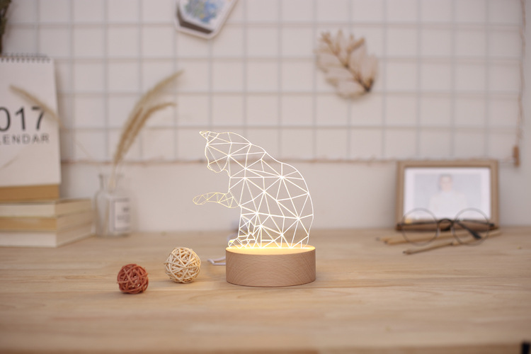 Wooden LED Night Light with Lucky Cat Design